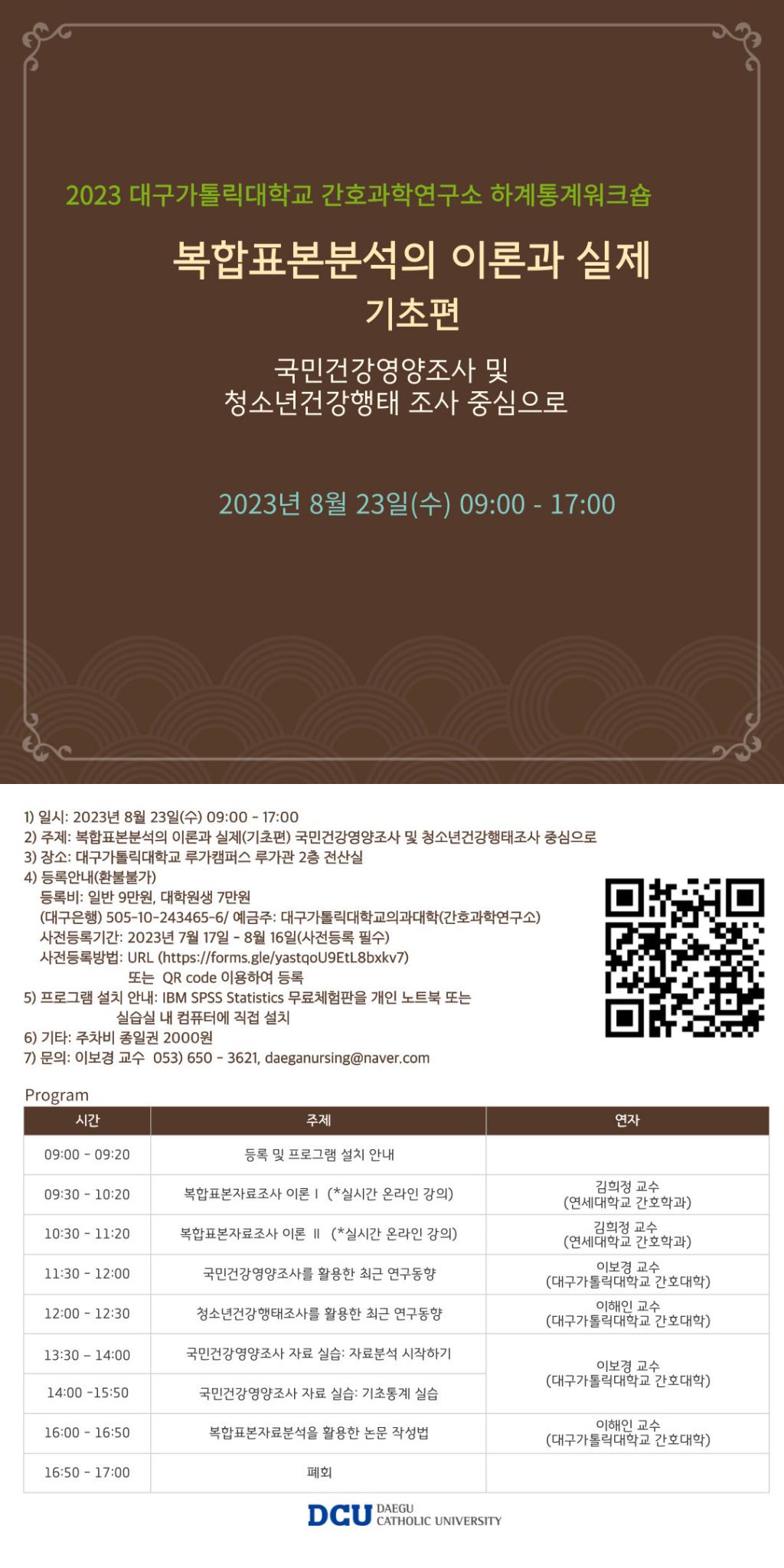 본 대구가톨릭대학교 간호과학연구소에서 2023년도 하계통계워크숍을