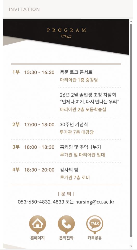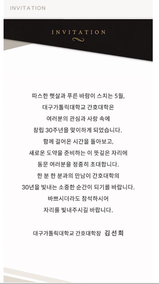 대구가톨릭대학교 간호대학 30주년 기념행사 안내