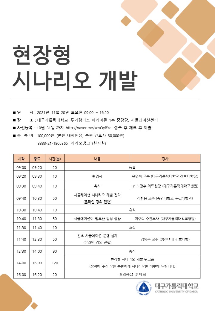 ■ 장 소 : 대구가톨릭대학교 루가캠퍼스 마리아관 1층 중강당, 시뮬레이션 센터