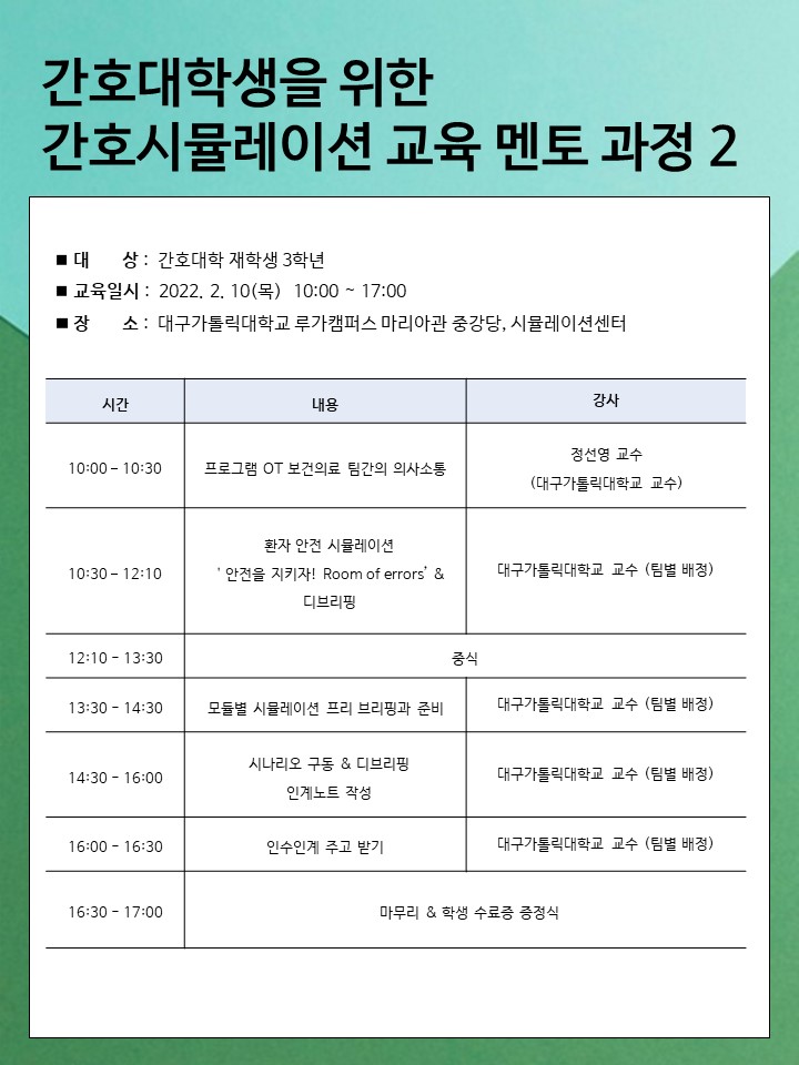 ■ 장소: 대구가톨릭대학교 루가캠퍼스 마리아관 중강당, 시뮬레이션센터
