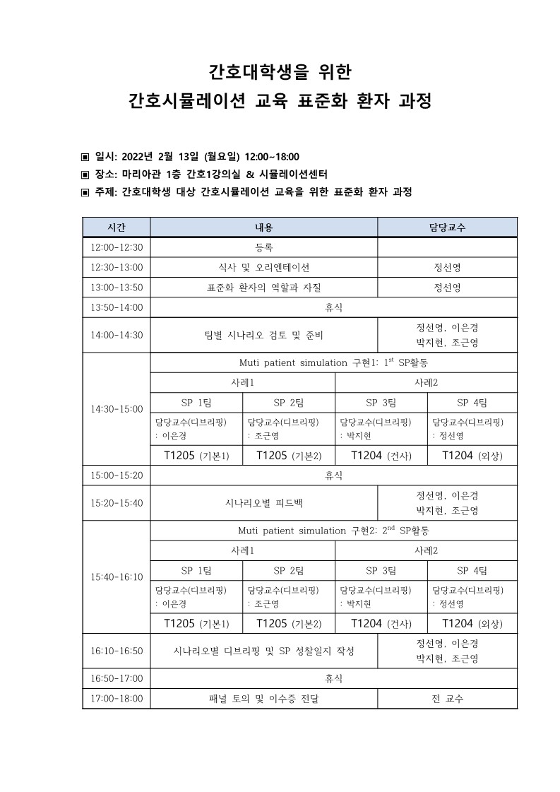 20230213 간호시뮬레이션 교육 표준화환자 과정