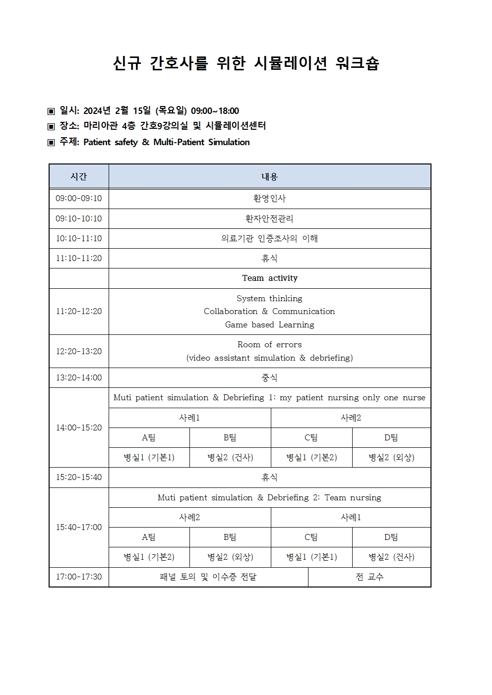 20240215 신규간호사를 위한 시뮬레이션 워크숍